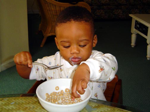 Out the car and eating my favorite ceral. I know how to use a spoon... |